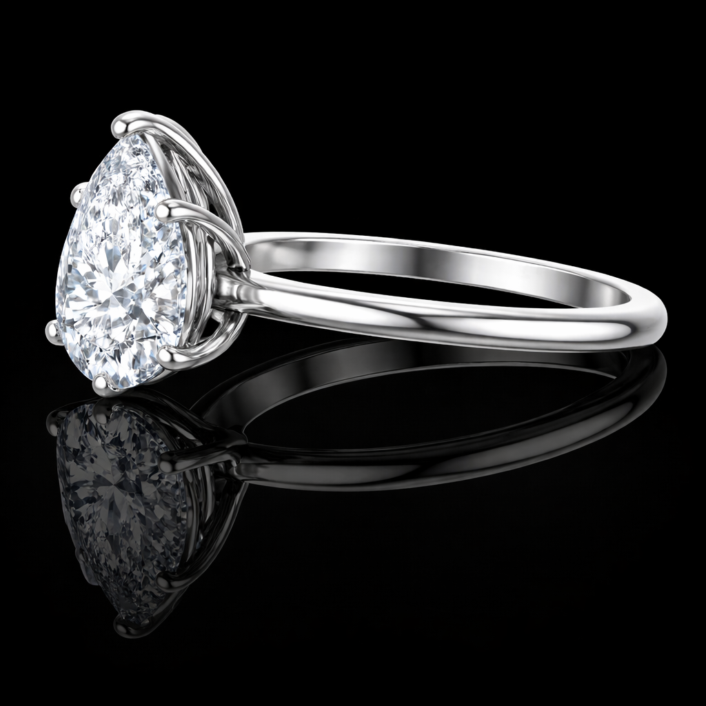 This elegant lab-grown diamond women’s solitaire engagement ring features a brilliant pear-cut diamond set in a classic solitaire design, offering a graceful silhouette with striking brilliance.