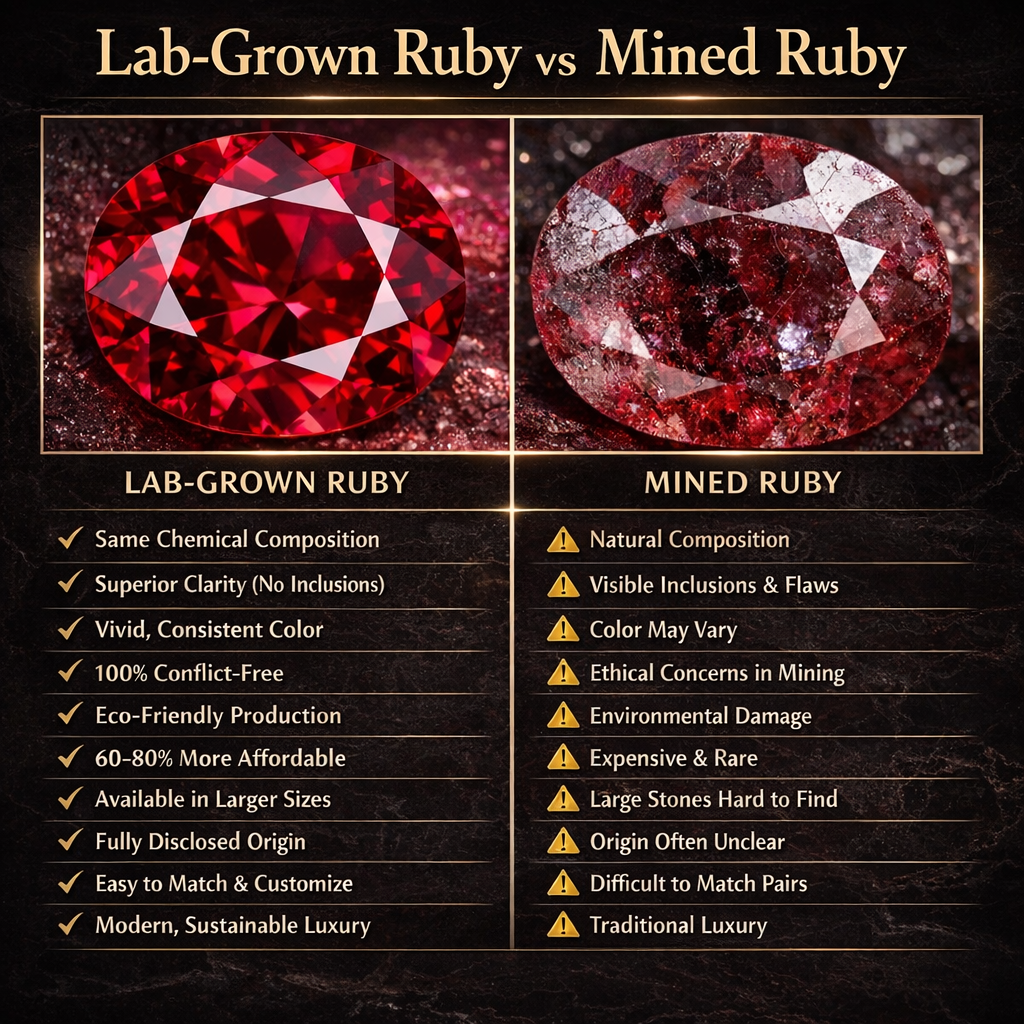 Lab-created stones ensure responsible sourcing and consistent quality.